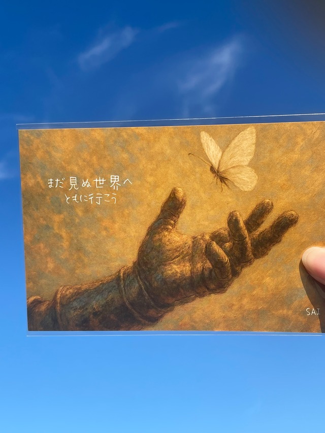 【戦いは終わった、騎士のポストカード】 長い戦いが終わり、静寂が戻った世界。 騎士は剣を置き、空を仰ぐ。 その手にふわりと舞い降りたのは、一羽の蝶──。 「まだ見ぬ世界へ、ともに行こう」 これは、終わりではなく始まりの物語。 新たな旅立ちを前にした瞬間の、やさしくも決意に満ちた一枚です。 過去を抱いたままでもいい。 傷を負っていても、手を伸ばせば未来はある。 誰かの背中をそっと押すように。 自分自身への“はじまりの手紙”としても。 このポストカードが、希望という名の風をそっと運んでくれますように。 youtube公開中 https://youtu.be/D95LrPtcFSo?si=2NC0YlZhfAhtepbe - -*- - -*- - -*- - -*- - -*- - -*- -*- -*- - - やわらかな絵とことばが紡ぐ、小さな物語のポストカード。 壁に飾れば、日々の景色に青の静けさを。 フォトフレームに入れれば、部屋に物語を。 手帳にはさんで、ふとした時に開けば癒しの時間を。 ── 自分だけの静かな時間に。 そして大切な誰かへの贈り物にも。 ■ サイズ ・はがきサイズ(10.5cm×14.8cm) ■ 素材 ・純白の高級ケント紙 ■製造国 ・韓国 ■ お手入れ・取り扱い ・水濡れや直射日光を避けて保管してください。 ・表面を傷つけたり、強い摩擦を加えないようご注意ください。 ・1点ずつ透明パッケージに入れてお届けします。 ■ 発送について ・通常、ご注文から2日以内に発送いたします。 ・イベント出展時は、イベント終了後に順次発送となります。 ■ その他のご案内 ・本作のイラストはAI生成を用いて制作し、必要に応じて調整を加えています。 ・専門の印刷所にて仕上げておりますが、状況により用紙や仕様が変更となる場合がございます。 ・ご覧いただくモニター環境によっては、実物と色味が若干異なる場合がございます。 ・制作はすべて小ロットで行っているため、数量限定のご案内となります。 再販ができない場合もございますので、出会えるときに手に取っていただければ幸いです。 ■ お問い合わせ ご不明点はショップのお問い合わせページよりお気軽にどうぞ。 - -*- - -*- - -*- - -*- - -*- - -*- -*- -*- - - あなたの日常に、小さな希望とファンタジーを。