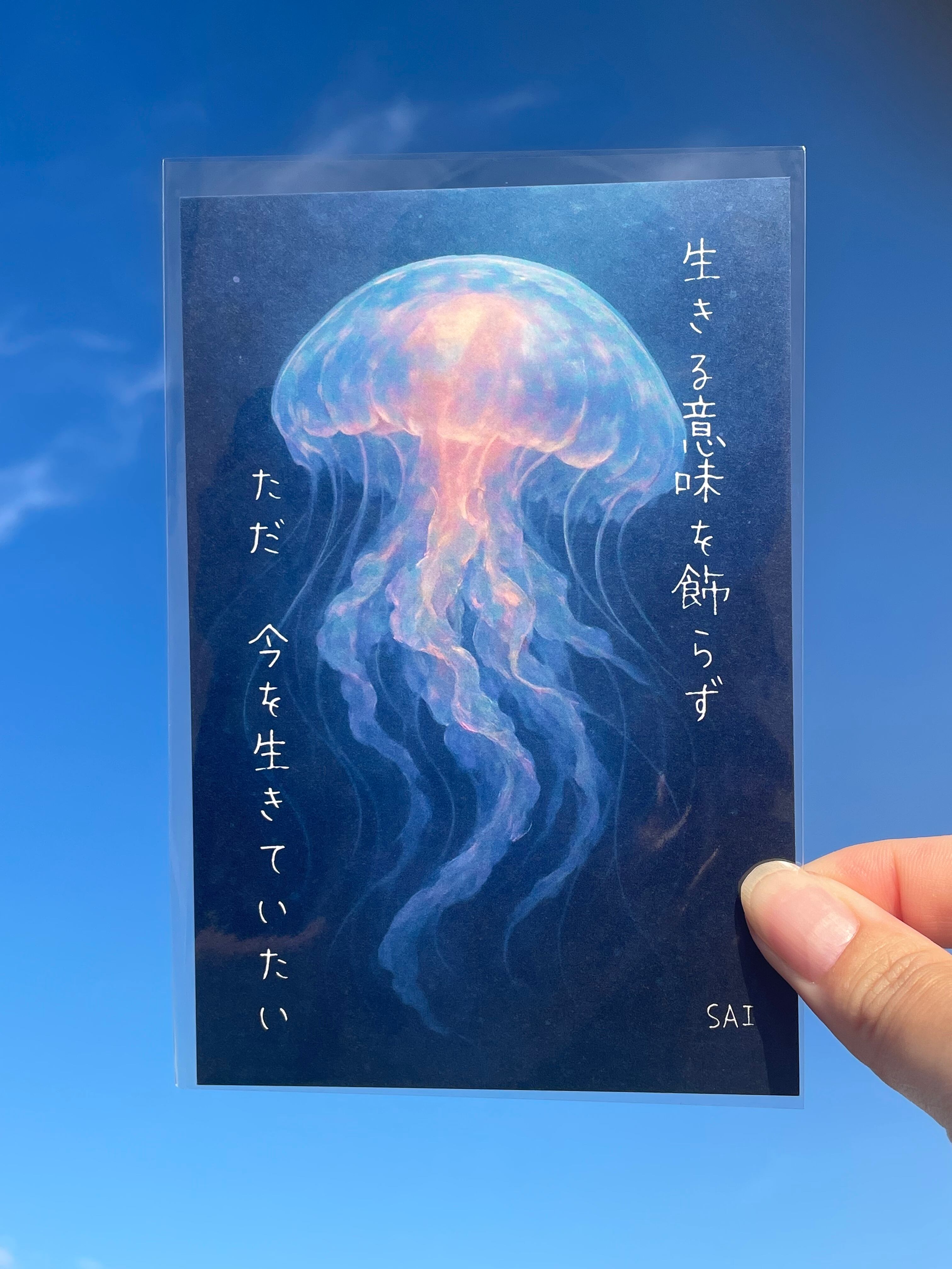ポストカード 【クラゲ】 青の世界 漂う 幻想的 オパールクラゲ オパール 海 深海 癒し