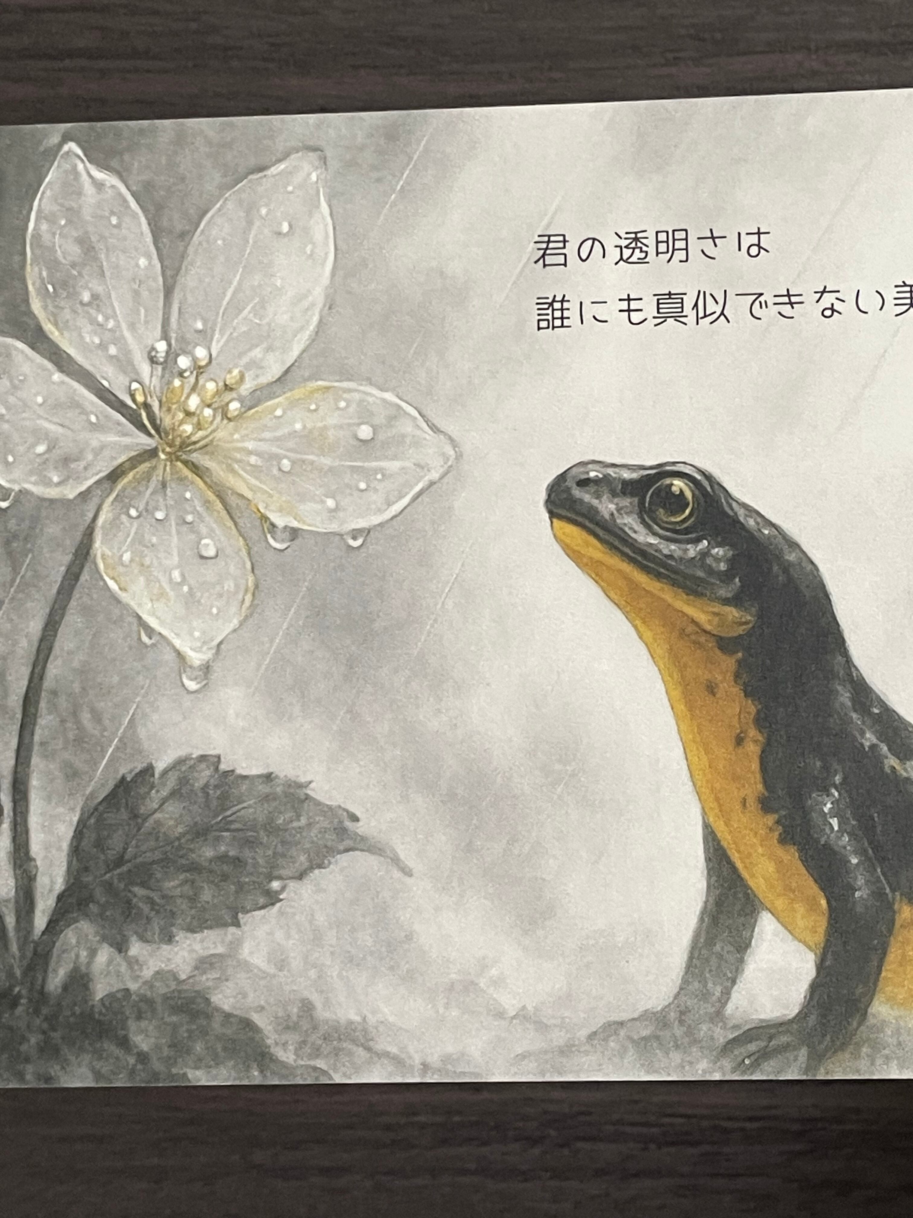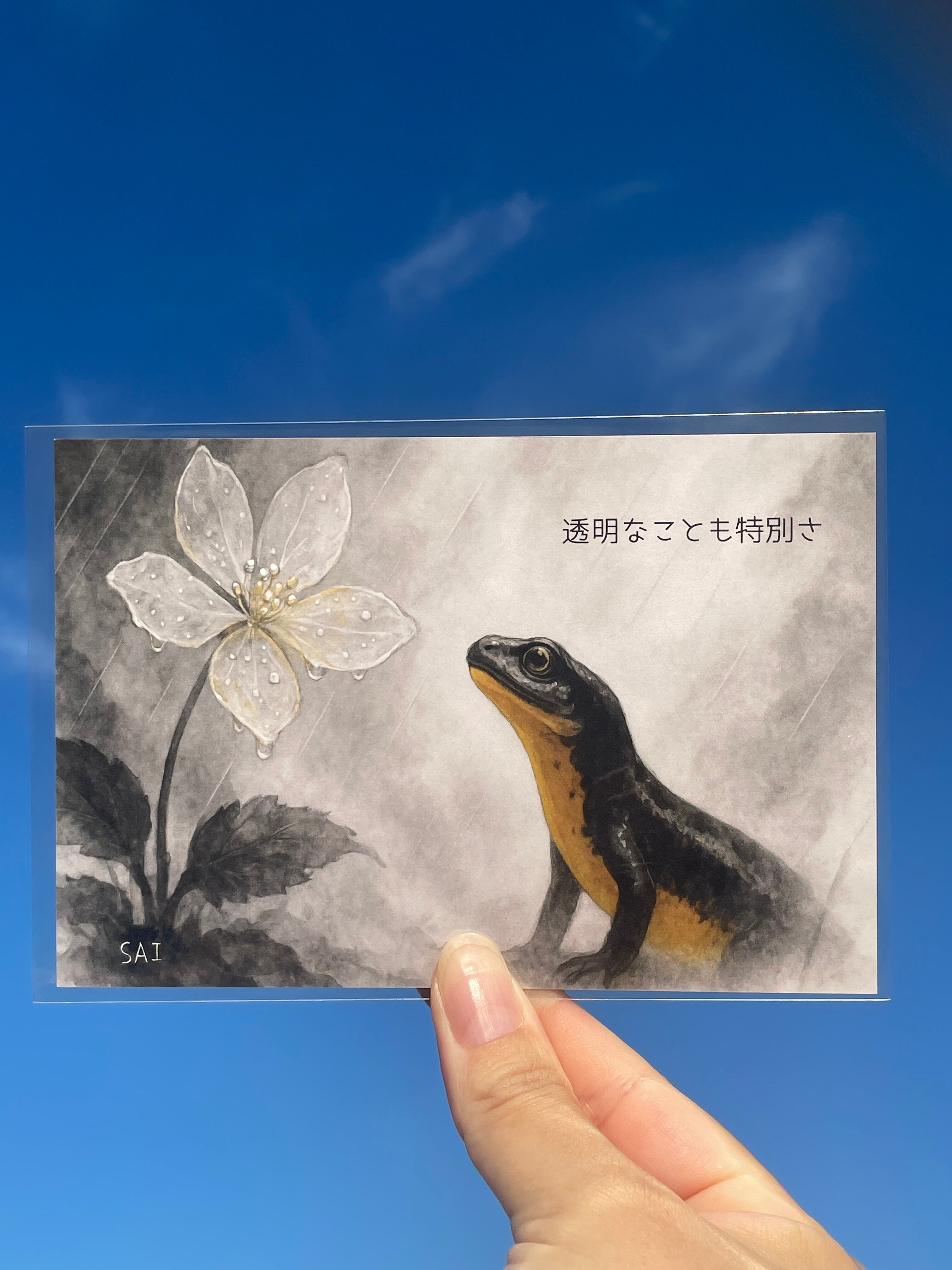 ポストカード 【サンカヨウ】 イモリ 透明になる花 スケルトンフラワー 透明 存在価値 透明なことも特別さ イモリ