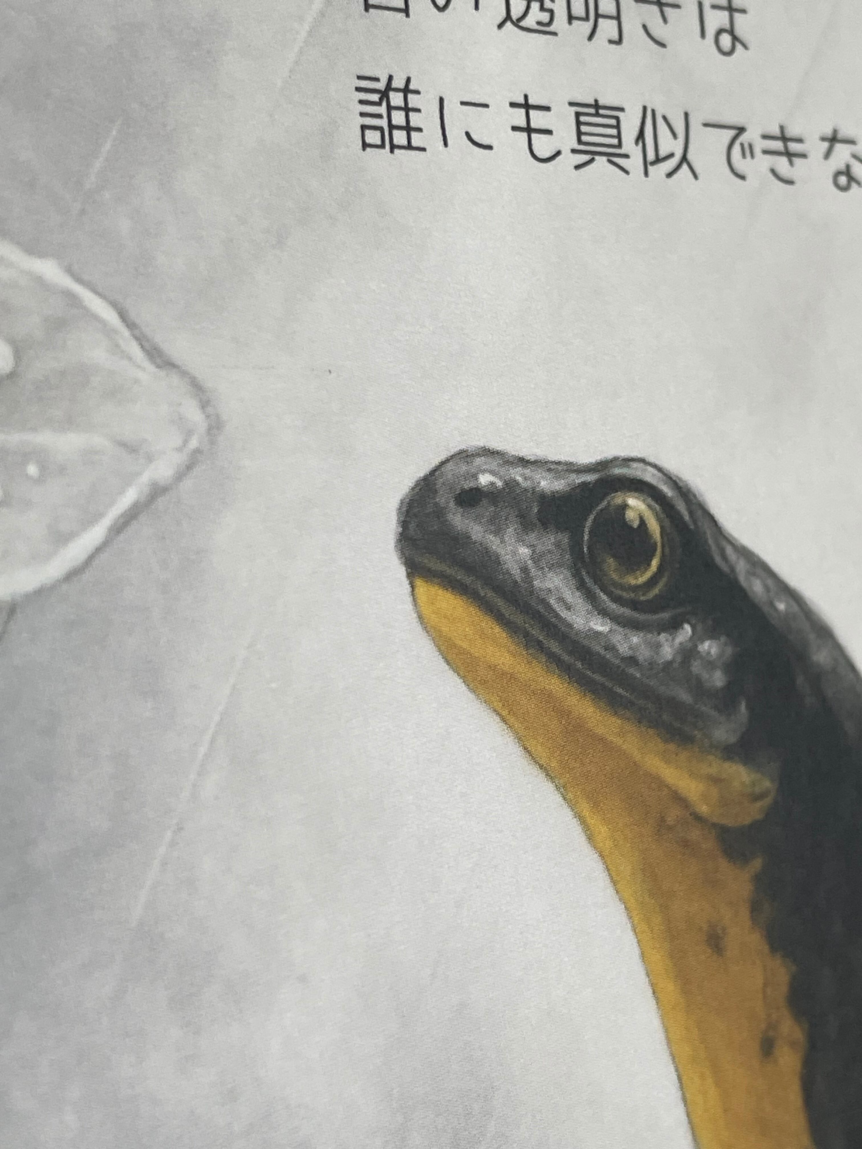 そんなとき、旅の途中の小さなイモリがあまりにも美しいサンカヨウに見惚れていた。