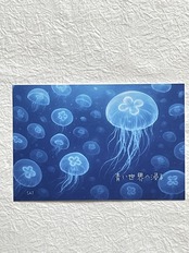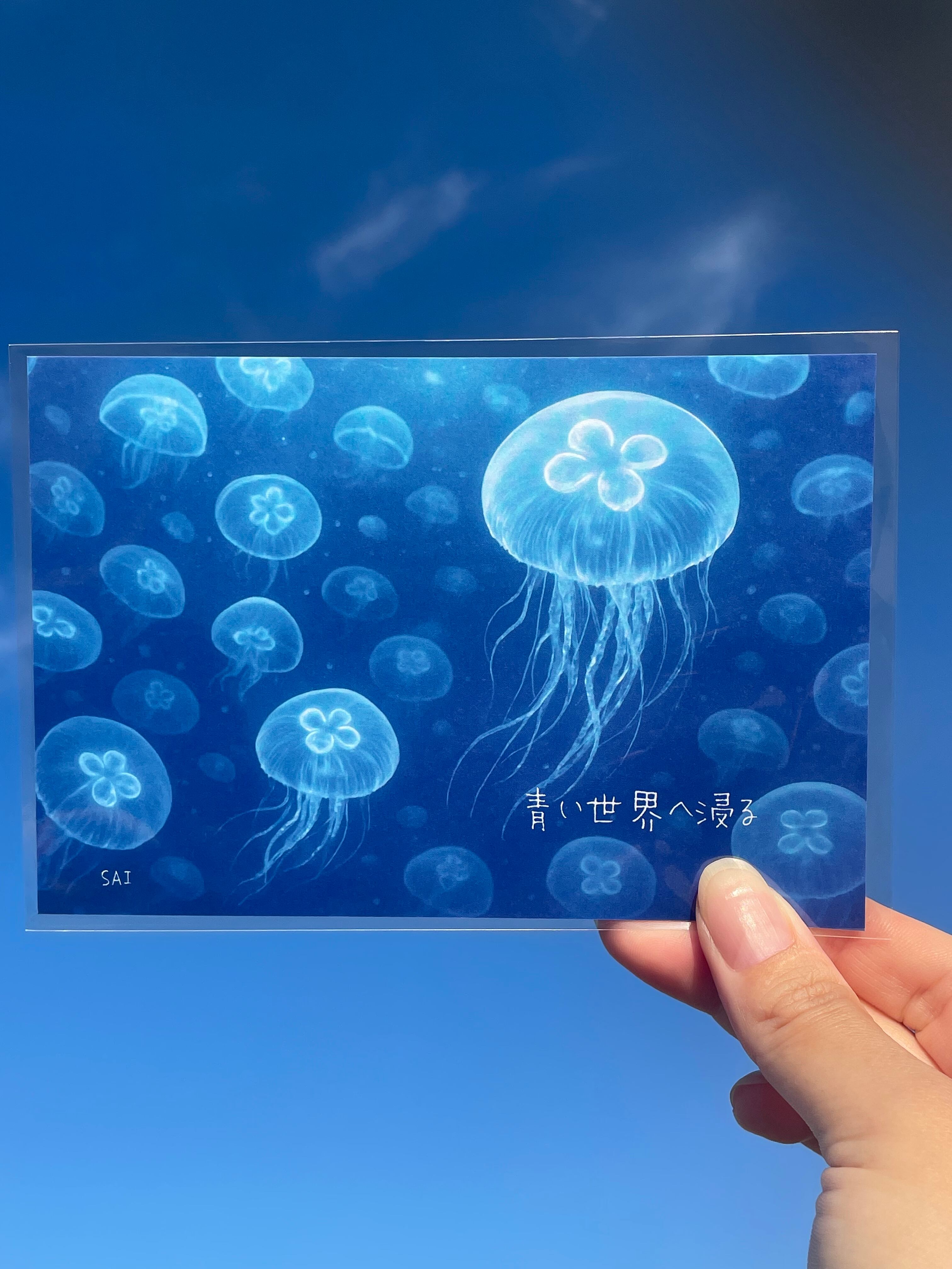 【クラゲ ポストカード|青く浸る幻想的なクラゲ】