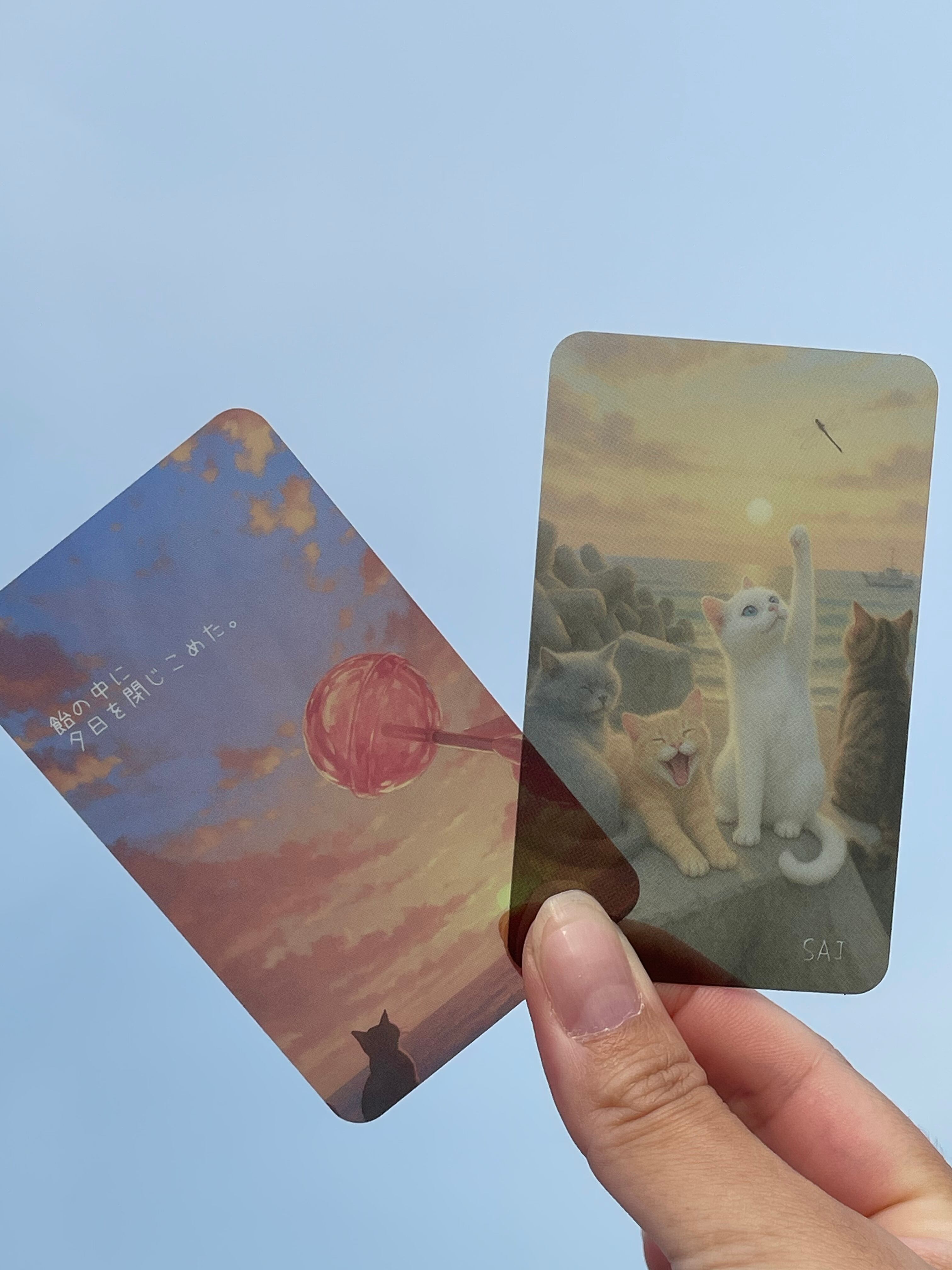 クリアカード 【飴と夕日】 飴 夕日 夕焼け 猫 黒猫 自由 ありのままで 飴の中に、夕日を閉じこめて
