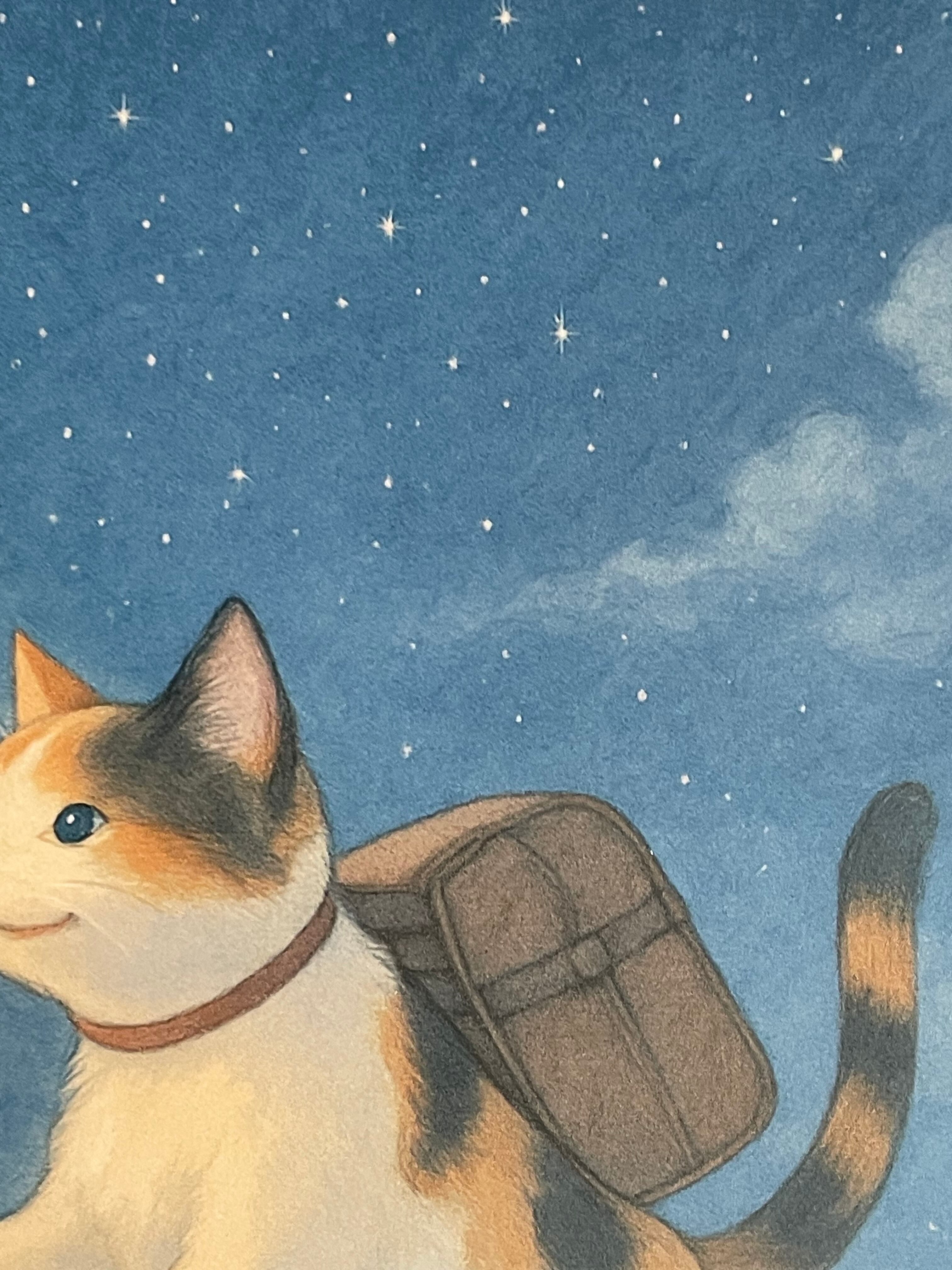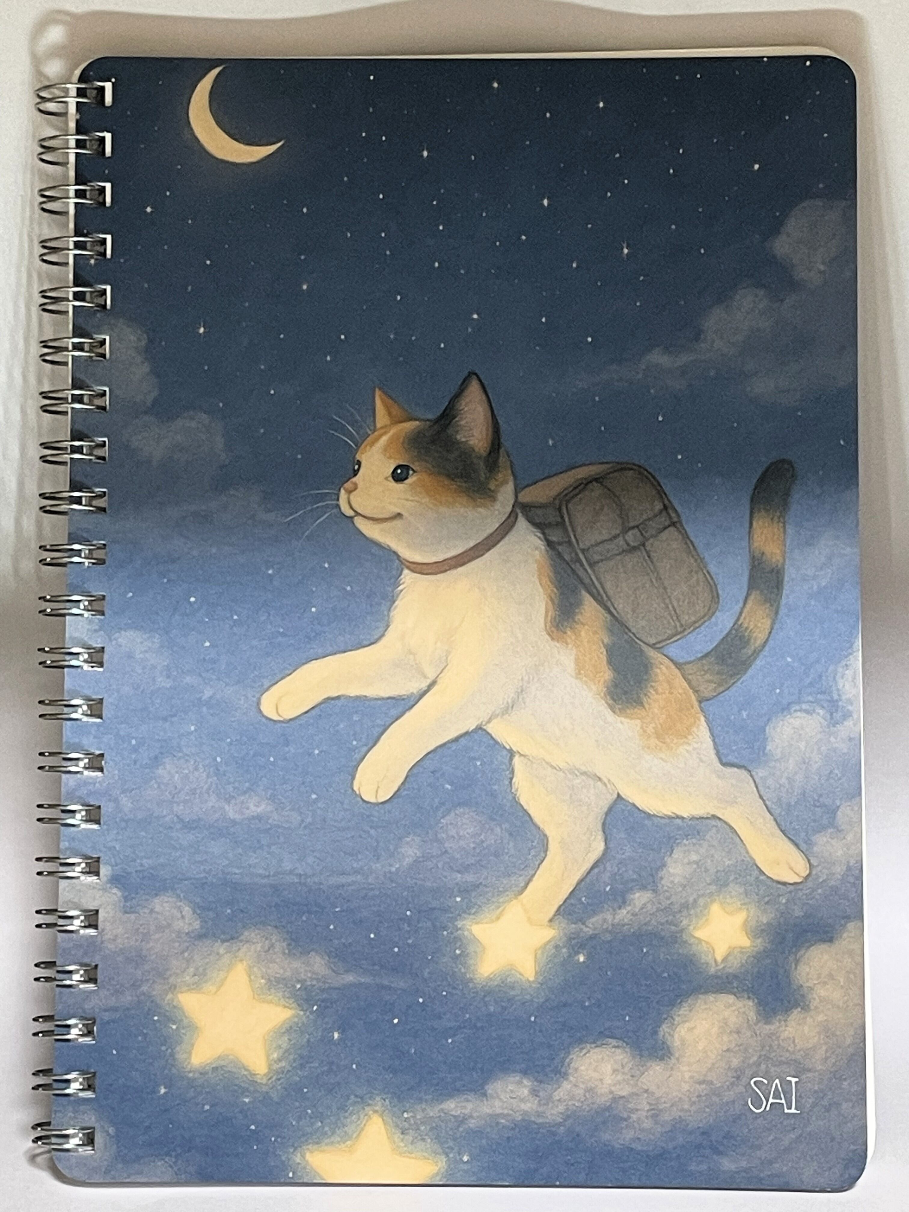 【残りわずか】B6 リング綴じノート 【旅をする猫】 猫 旅行鞄 旅 駅 夜空 星 三毛猫 ここから始まるストーリー