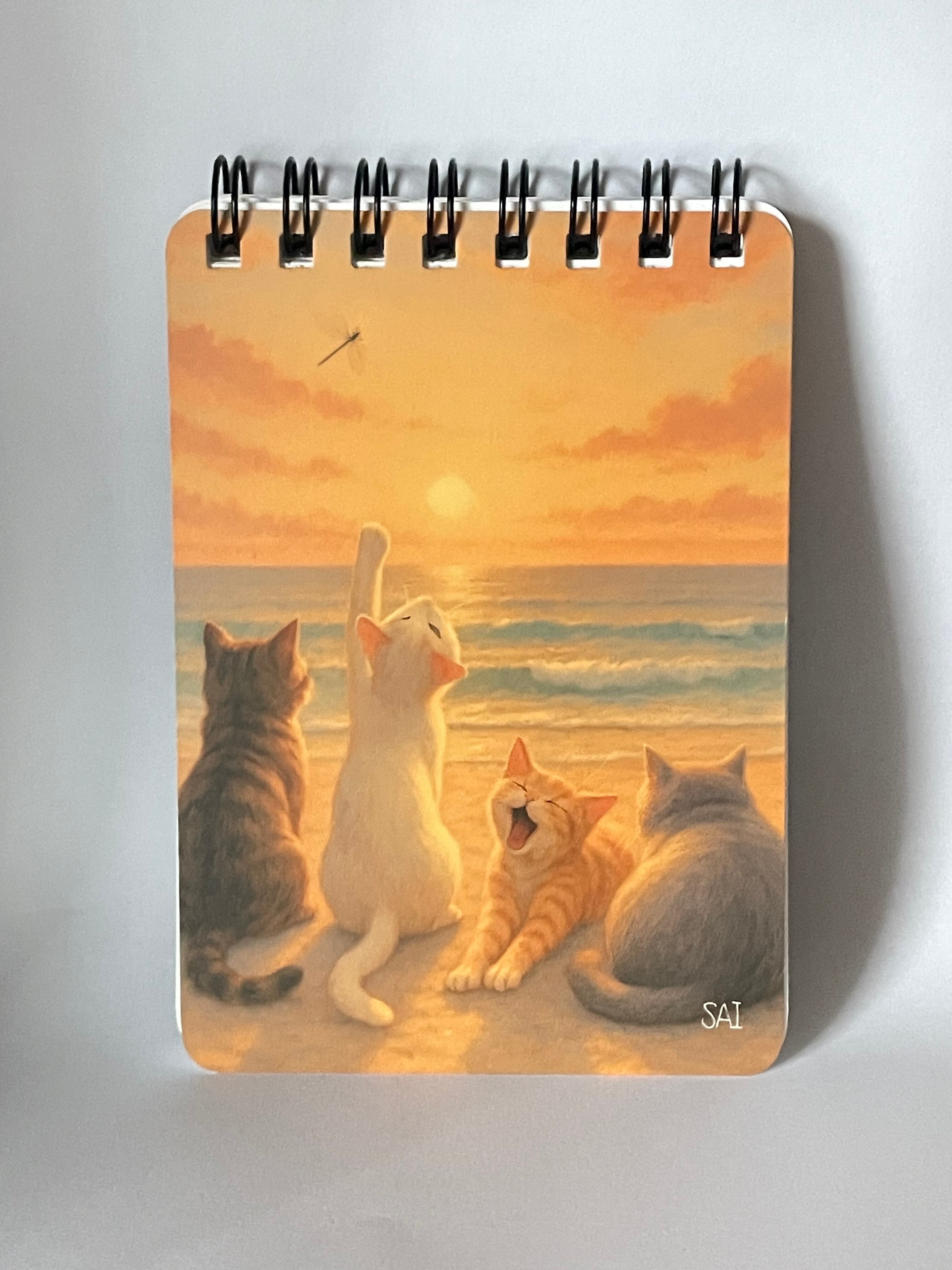 【仲良し4匹 A7 リング綴じノート|夕焼けの穏やかな時間】
