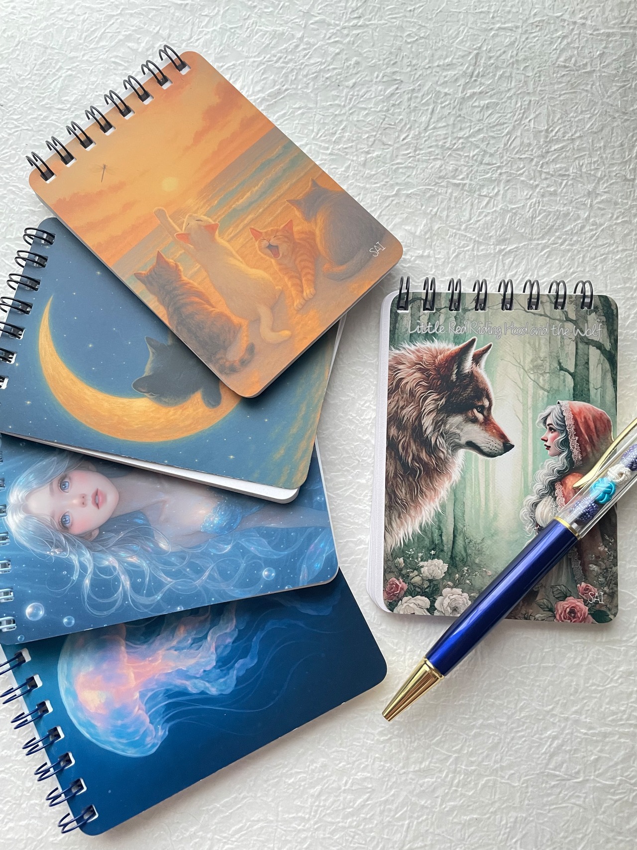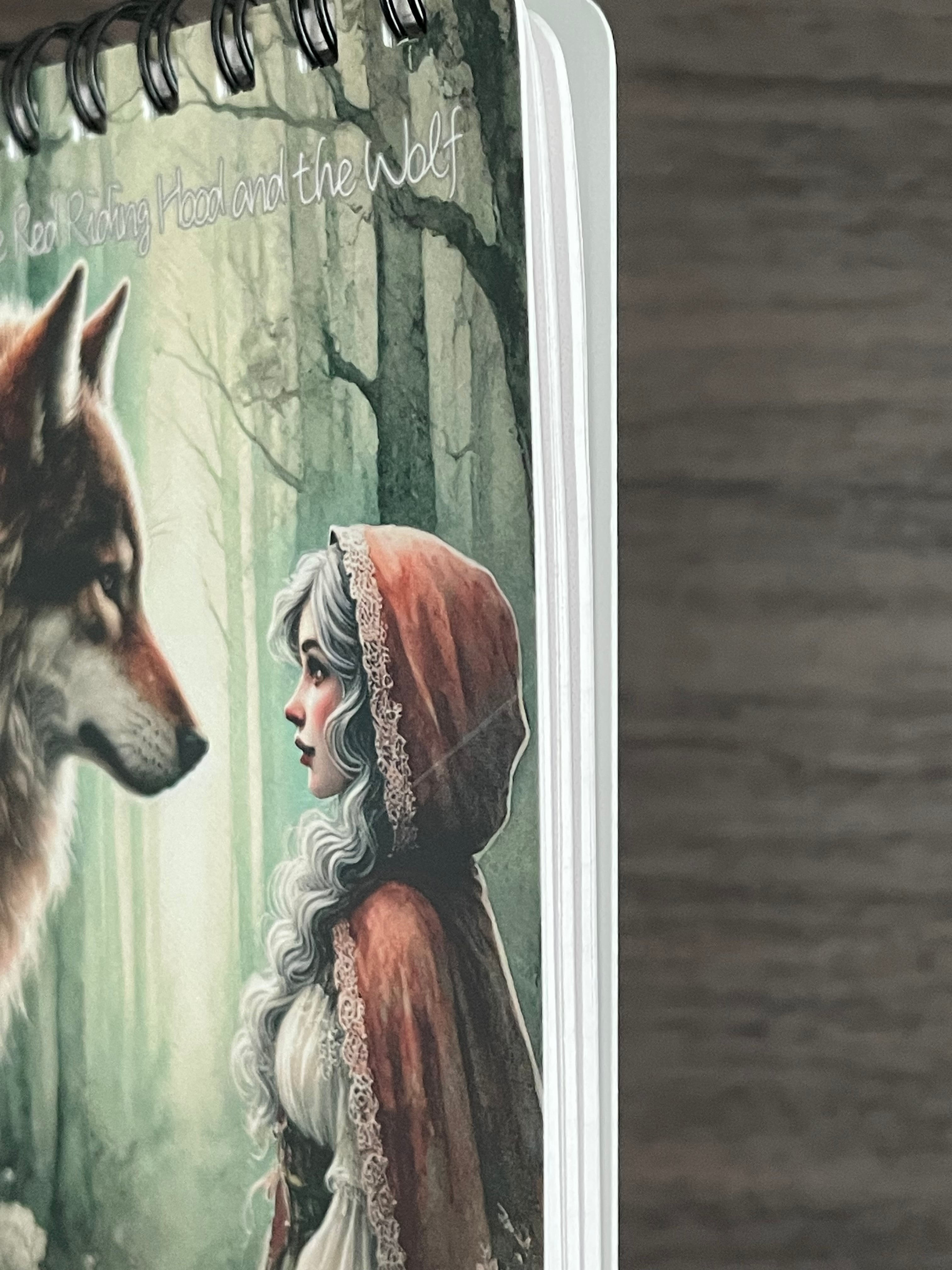 お届けするのは 写真1枚目にある「赤ずきんと狼」A7リング綴じメモ帳(1冊) です。