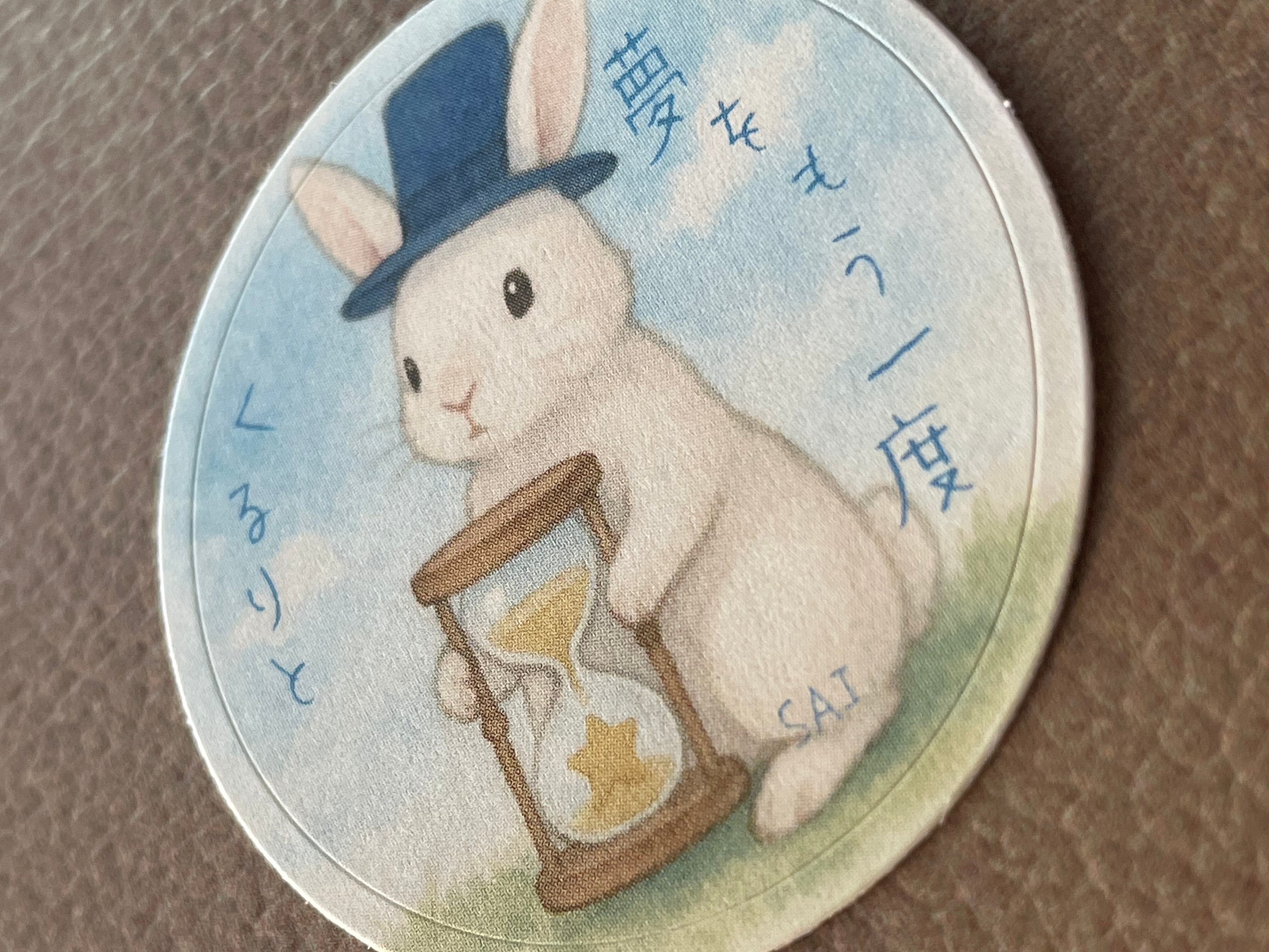 【うさぎ×砂時計 まん丸シール|くるりと 夢をもう一度】