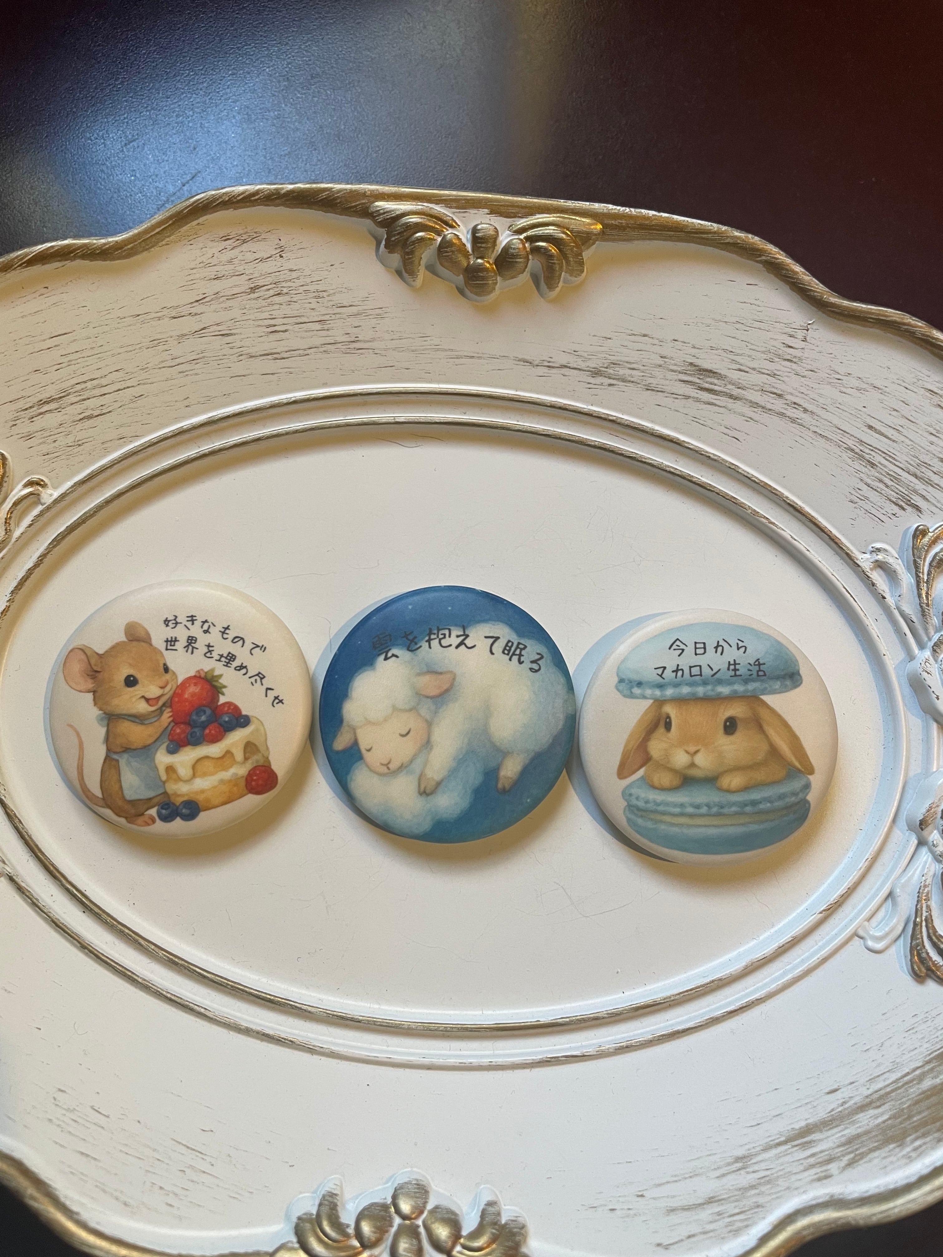 ※お届けするのは 写真1枚目にある「ひつじ×雲」まん丸い缶バッジ(1個) です。