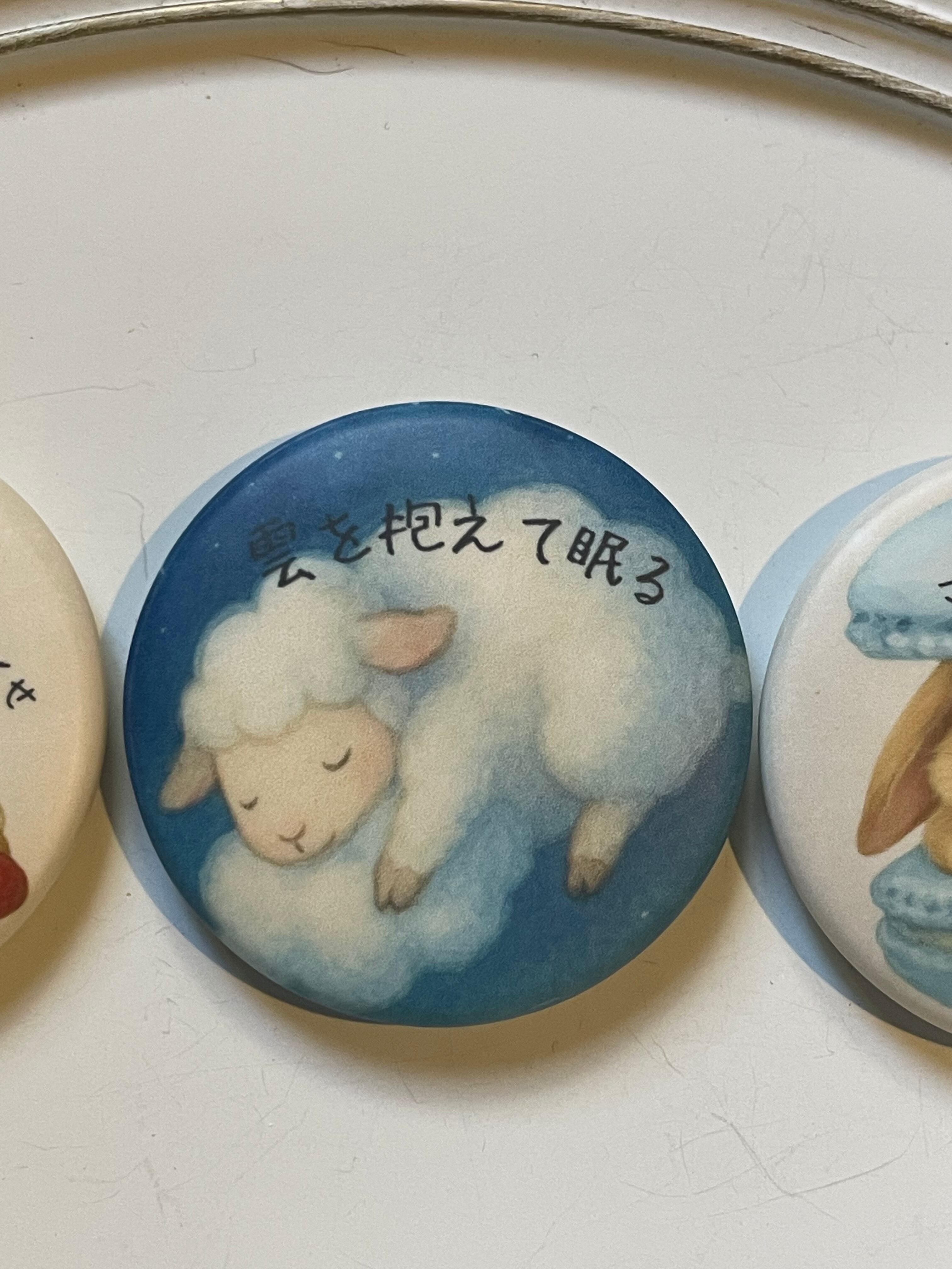 丸い缶バッジ 【ひつじ×雲】 雲を抱いて眠る