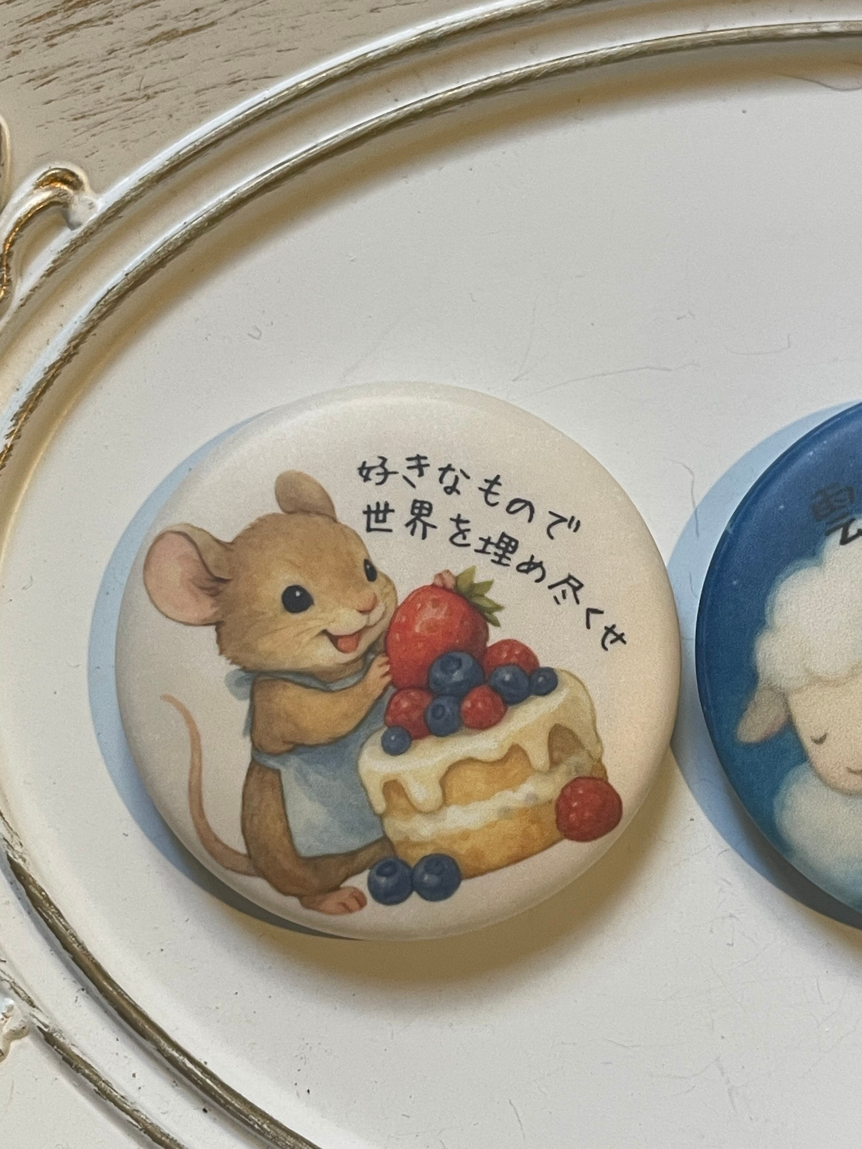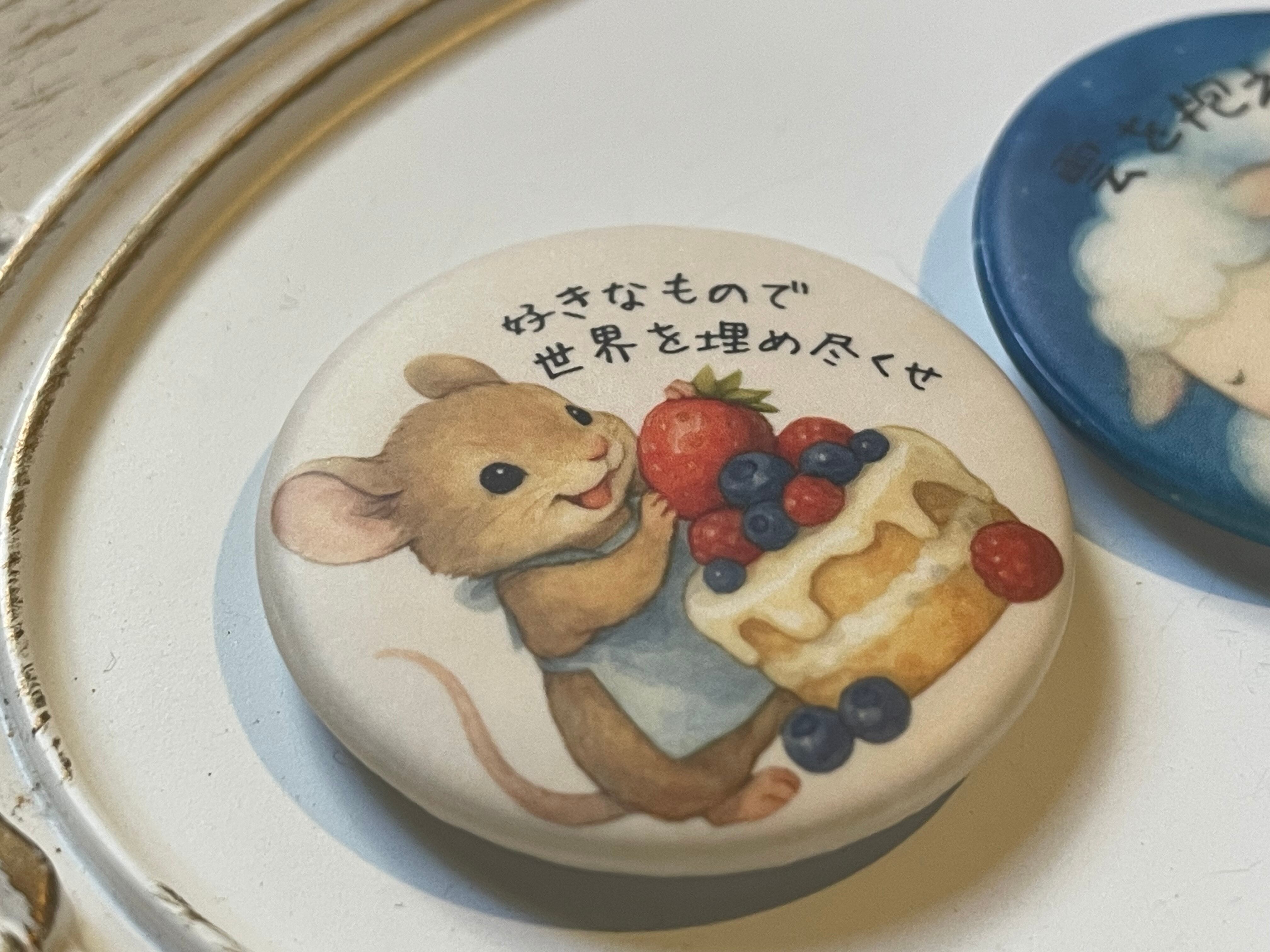 丸い缶バッジ 【ねずみ×ケーキ】 好きなもので世界を埋め尽くせ