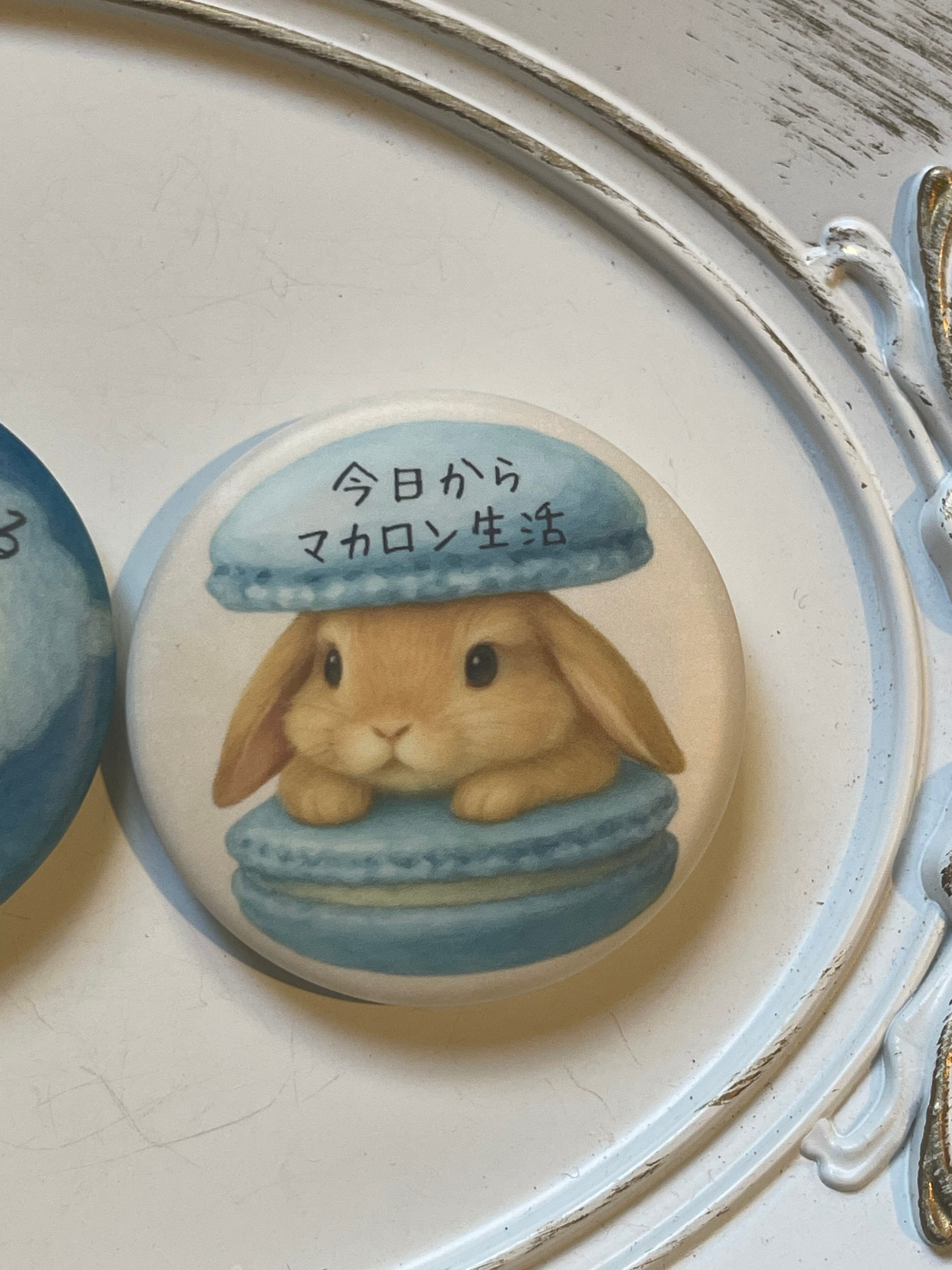 丸い缶バッジ 【うさぎ×マカロン】 今日から マカロン生活